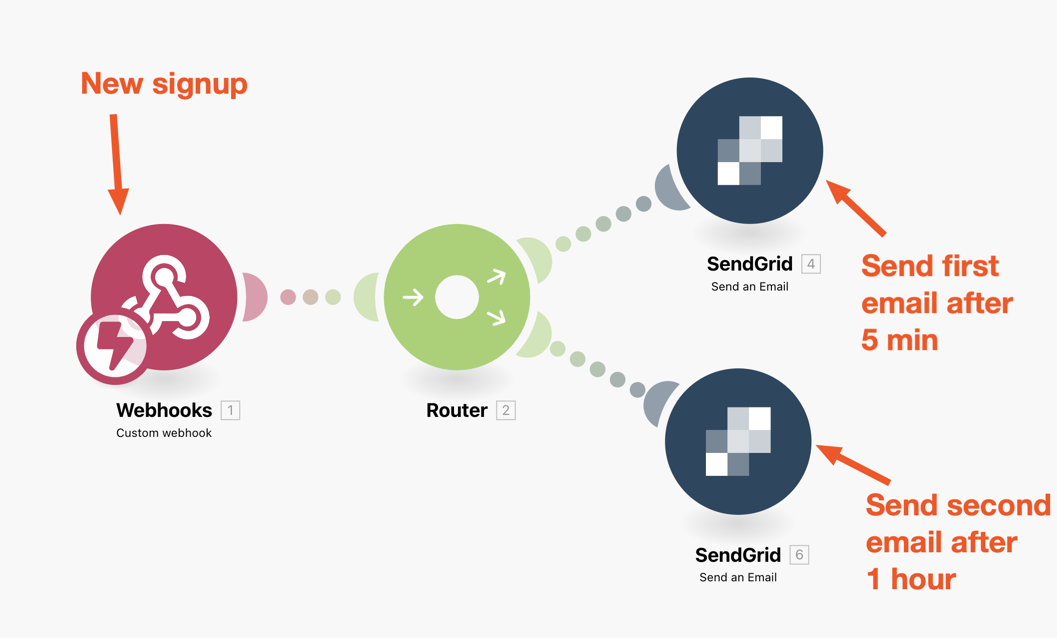 We have already been using make.com to automate our sales funnel so I figured I would explore it further to see if it can be used to automate our signup email sequence.
