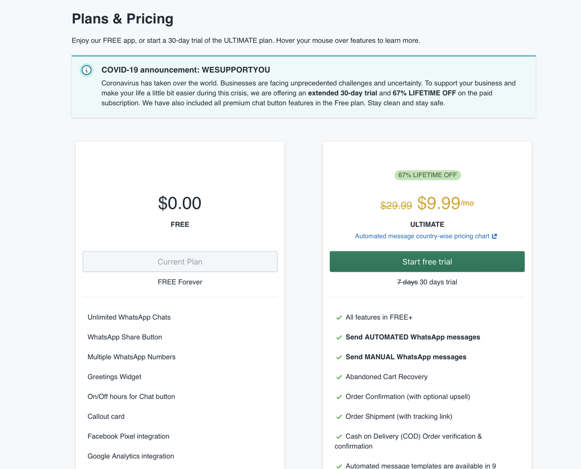 This led us to making the move that changed everything for us. We originally had 3 confusing pricing plans that cost 10$, 15$ and 30$ respectively. We made the 10$ plan completely free and we clubbed the 15$ and 30$ plan into one single plan worth 9$ a month. So we essentially dropped our prices by 67%.