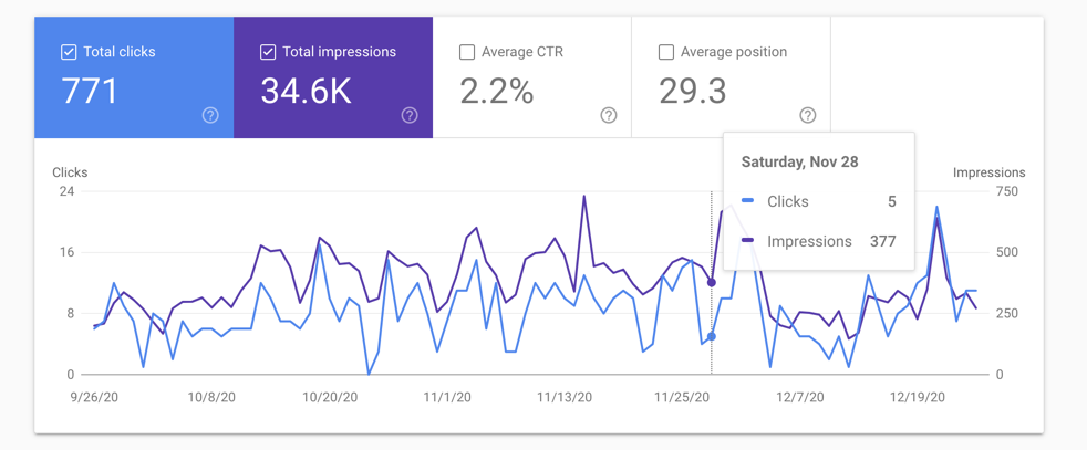 As a result of all these experiments, my website now ranks for a wide range of keywords and I consistently receive more than 300 impressions a day.