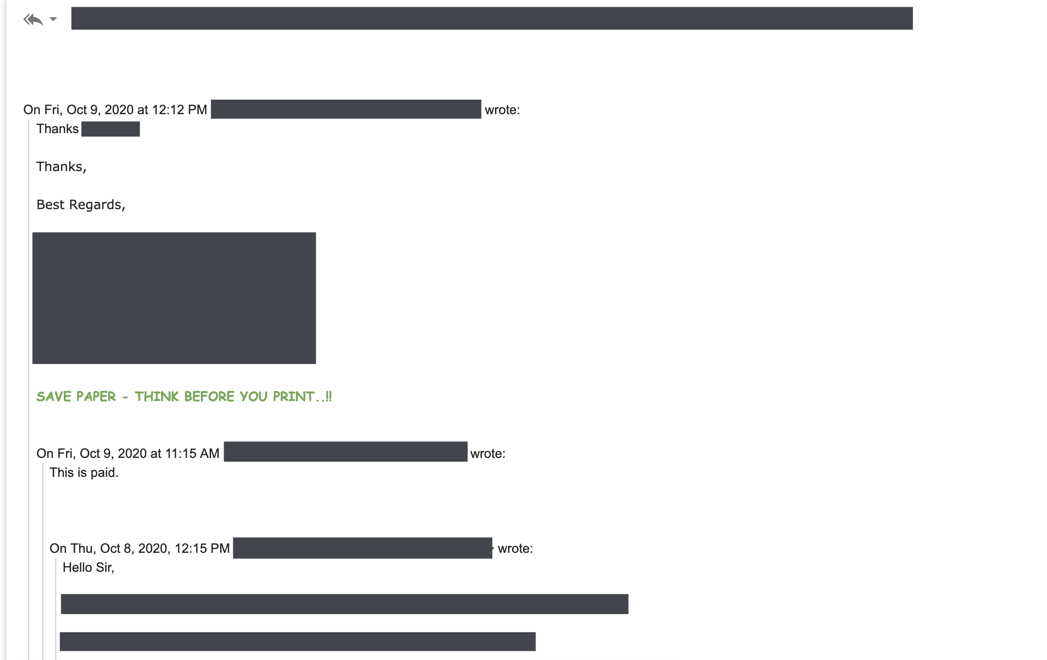 Email clients further make conversation threading easier with the help of quoted text. When you reply to an email you can click on those 3 dots to expand the entire thread and get a quick overview of who all participated in the thread, what did each of them reply with and where exactly are we in the conversation.