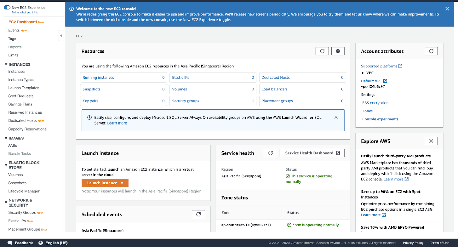 EC2 dashboard