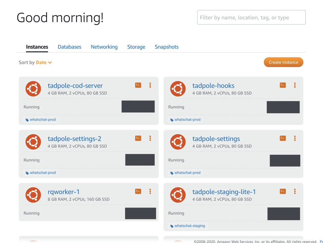 - Use lightsail instances (20$ per instance) instead of EC2 instances (37$ per instance)